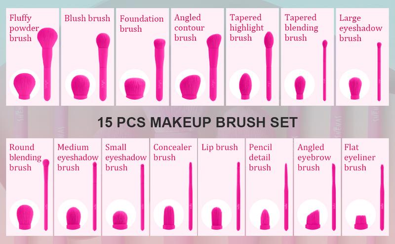 - Beginner Friendly Set: It is available for different colors and nice brush set of premium synthetic brushes. So pretty and the variety is great for any beginners. The set contains 15 brushes with a rose gold zippered carrying case. Highend makeup brush will highly exceed your expectation. brochas de maquillajea.